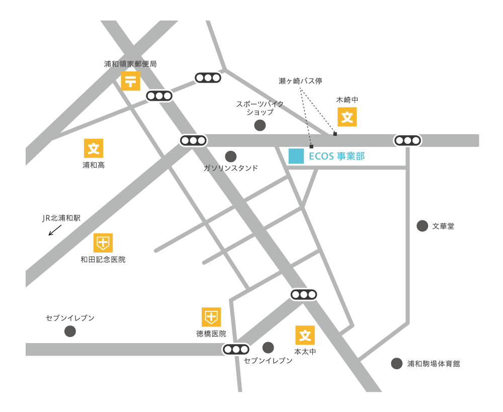 ECOSは、さいたま市浦和区を中心に、周辺地域で仕事をする人々と一緒に、新たな価値をもたらす「まちづくり」に協力していきます。